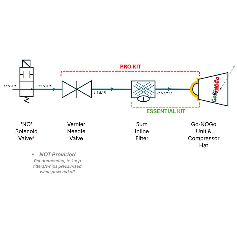 Perfect for dive shops, training centers, and commercial dive operations requiring reliable carbon monoxide detection in their breathing air systems. The compressor attachment kit eliminates the need to manually position your Go-NOGo tester for each fill, ensuring consistent safety monitoring and compliance with diving safety standards.